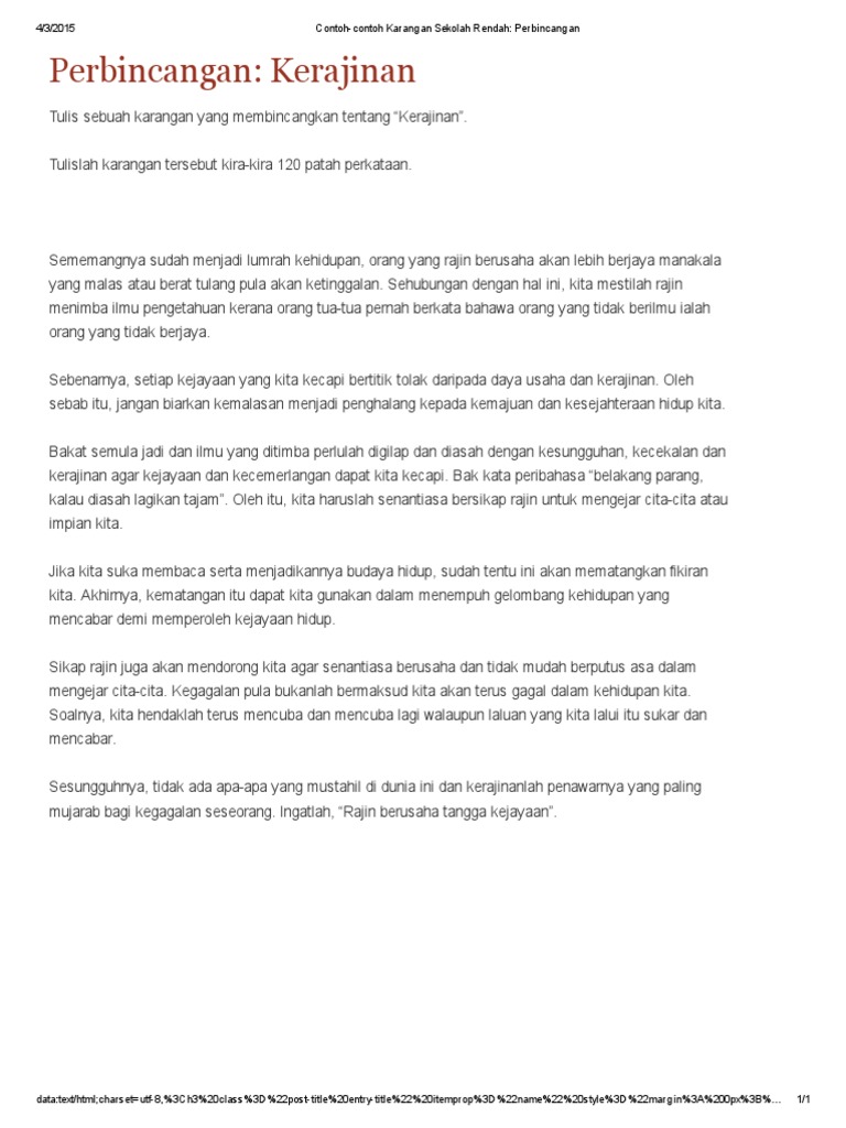Contoh Contoh Karangan Sekolah Rendah Perbincangan Pdf